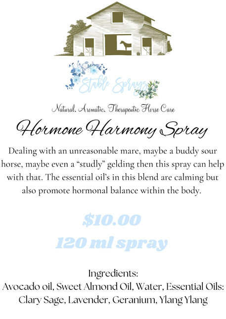 Mares, this one's for you! Formulated with calming, relaxing AND hormone balancing essential oils this is a great spray to help mares when in cycle... Or just all the time